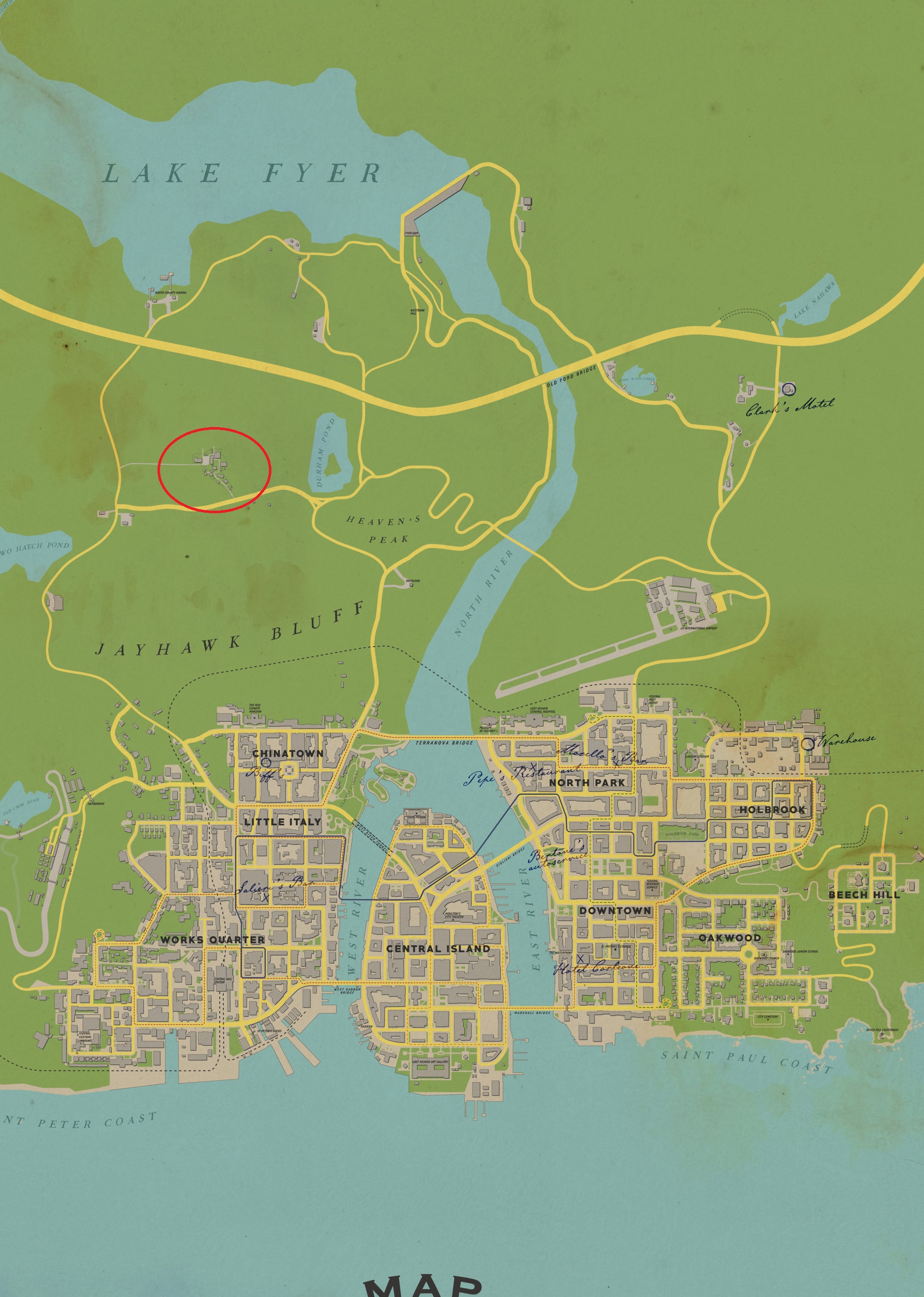 Меня кстати вот этот участок пригорода заинтересовал. Что это? Та самая ферма из геймплейного ролика? Выглядит как небольшая деревушка.