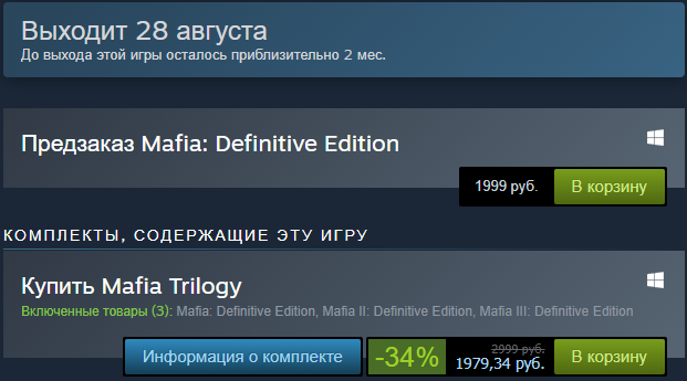 В Steam появилась скидка на Mafia: Trilogy для обладателей игр серии.
