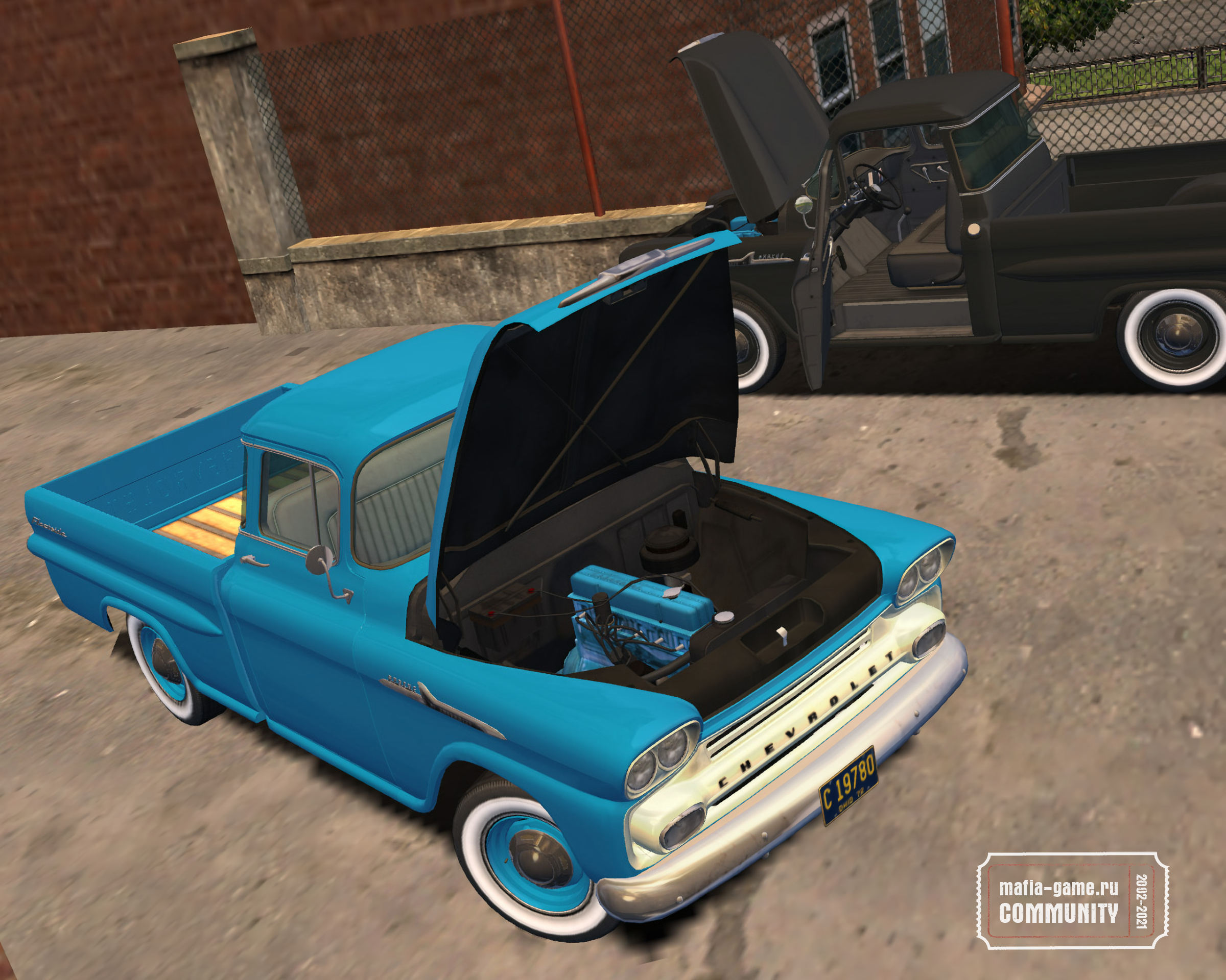 Модель 1958 года претерпела рестайлинг, получив четыре фары вместо двух и иную решётку радиатора. Также, в этом же году появился кондиционер, входящий в стандартную комплектацию. Рядный шестицилиндровый двигатель 1BBL "235" объёмом 3.9 литра выдавал 125 л.с. и работал в паре с механической трёхступенчатой коробкой передач Saginaw. В архиве две версии: грязная и ржавая для фермерских нужд, и "городская" — чистая, сверкающая хромом в идеальном состоянии. Scratch-made 3D модель, собственные анимации открывания заднего борта, собственная тень, звуки, настройки и сгоревший остов, BBRD-гловинги на всех фарах и поддержка Real Driver 2.0. P.S. Модель также может заменить Bolt Model B Pickup (ForApic), у Вас не возникнет проблем с прохождением миссии "Сделка века!". Автор модели: StratumX Автор доработки и конвертации в Mafia: Condor Автор оригинального текста к файлу: Viper
